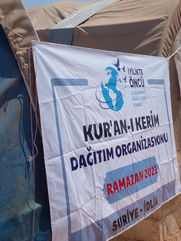 Kış yardımları kapsamında İdlib kırsalında başlattığımız acil insani yardım konvoyunda; 3 tır kömür, 700 adet çizme ve 10 ton ağırlığında çeşitli gıda malzemesi dağıtımını büyük bir hassasiyetle gerçekleştirdik. Yine Ramazan Ayında çadır kamplarına gıda kolisi, iftar sofraları, giysi ve Kuran-ı Kerim mushafları dağıtımı sağladık.